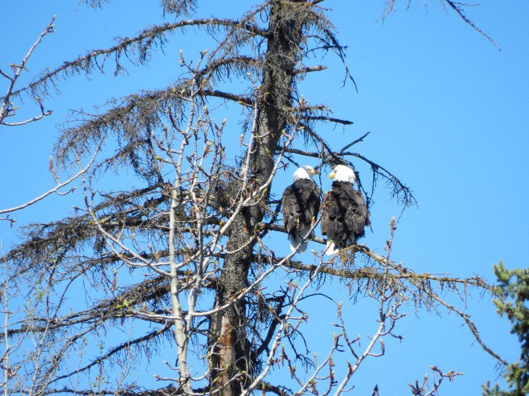 These two eagles set up shop nearby to better observe the lake. The resident crows were not happy about their new neighbors.