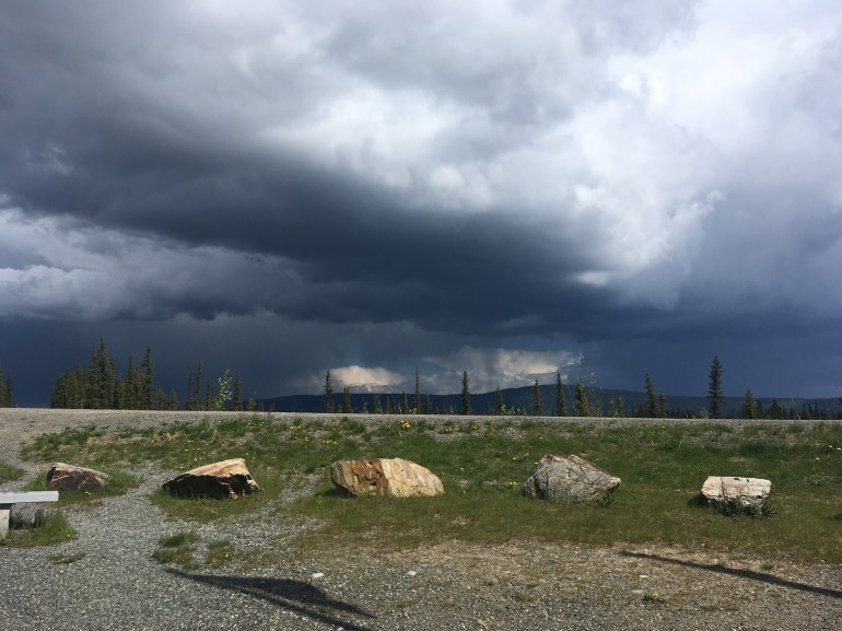 We never experienced thunderstorms in Canada, but this storm greeted us at the Alaska border.