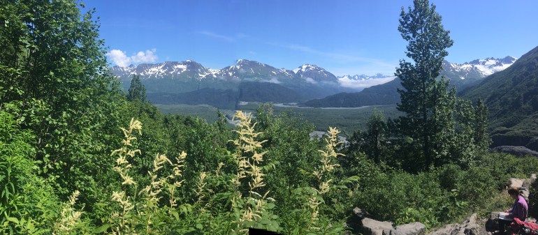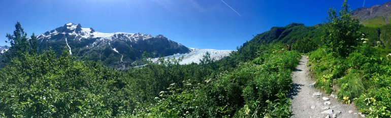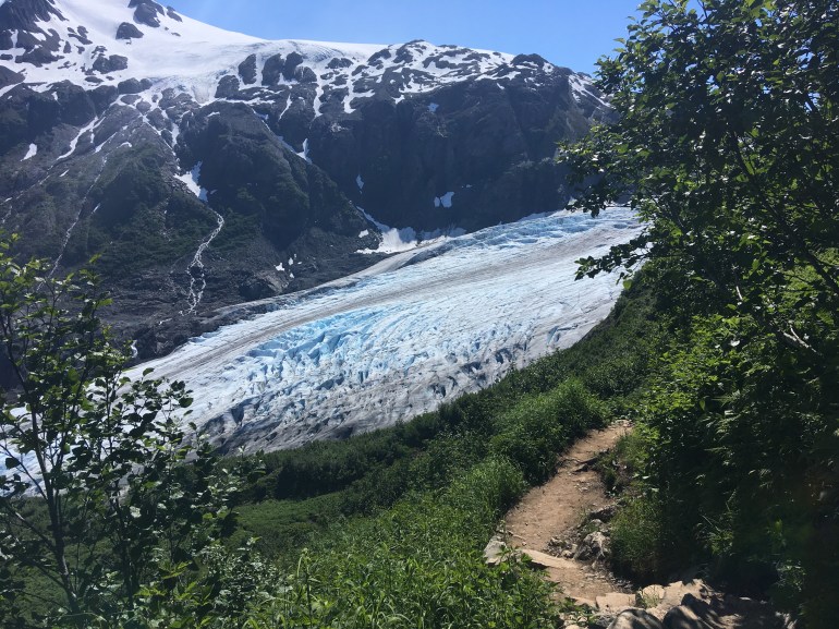 After walking under brush, it was nice to pop out to a view of the glacier.