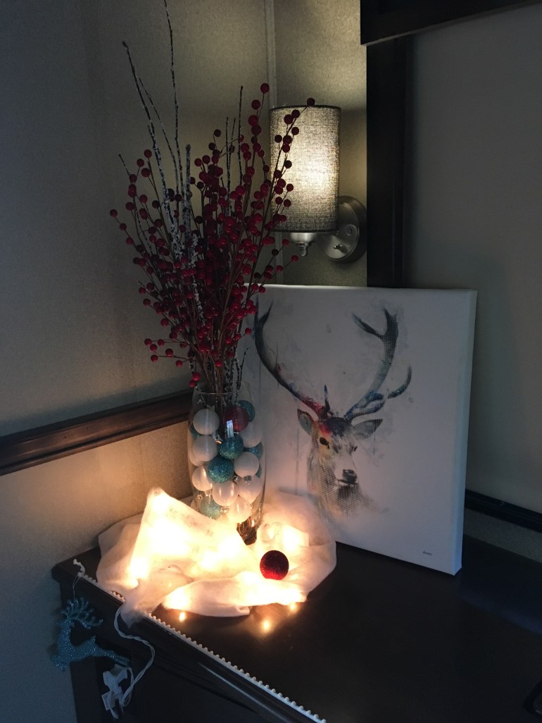 Denise and I decorated our RV for the holidays. Okay, Denise decorated the RV, but I helped. Really.