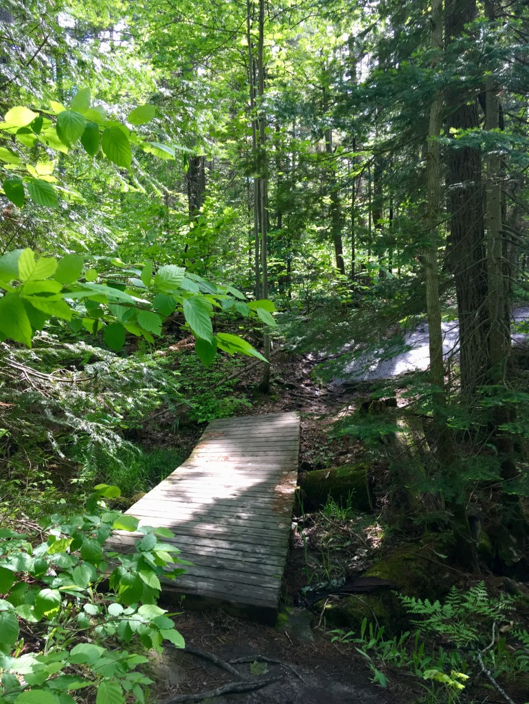 A verdant trail. That wooden bridge feels stronger than it looks.
