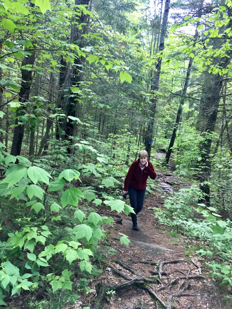 Have we mentioned that Spring comes to southern Canada in June and that the mosquitos are hungry? Here is Denise demonstrating how to treat a mosquito that has landed on one’s neck. Time to pick up the pace as the mosquitos have found us!
