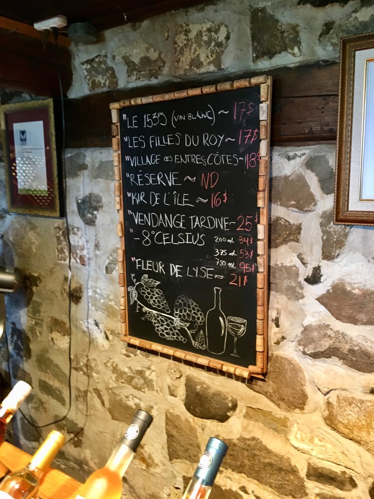 There is an island northeast of Quebec City, Quebec, that hosts several attractive wineries. We liked the first one stopped in so much, we spent most of the afternoon there.