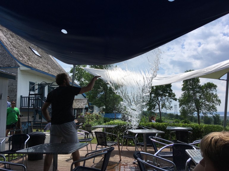 The heavy rain from the night before collected easily in the sun shading tarps overhead. Occasionally a brisk wind would arrive unexpectedly dousing an unsuspecting visitor.