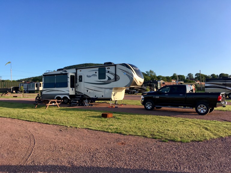 Here’s a photo of our rig showing a slide out and leveling jacks.