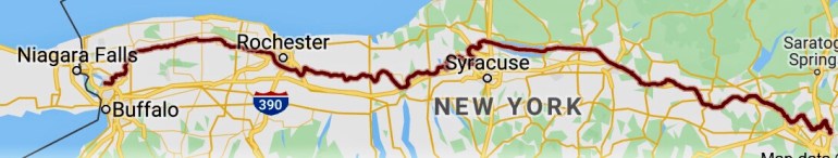 The Erie Canal is a landmark famous for transporting goods and people westward across New York. This man made lock and dam system runs 363 miles east to west and was completed in 1825.