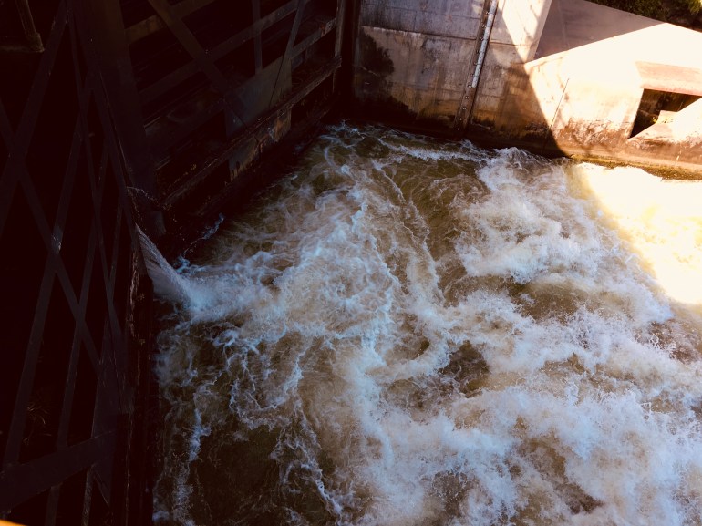 Here’s an empty lock waiting for water to help transport another boat down the canal.