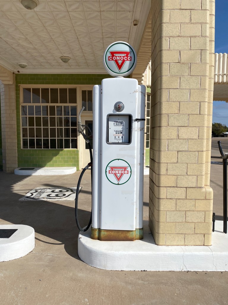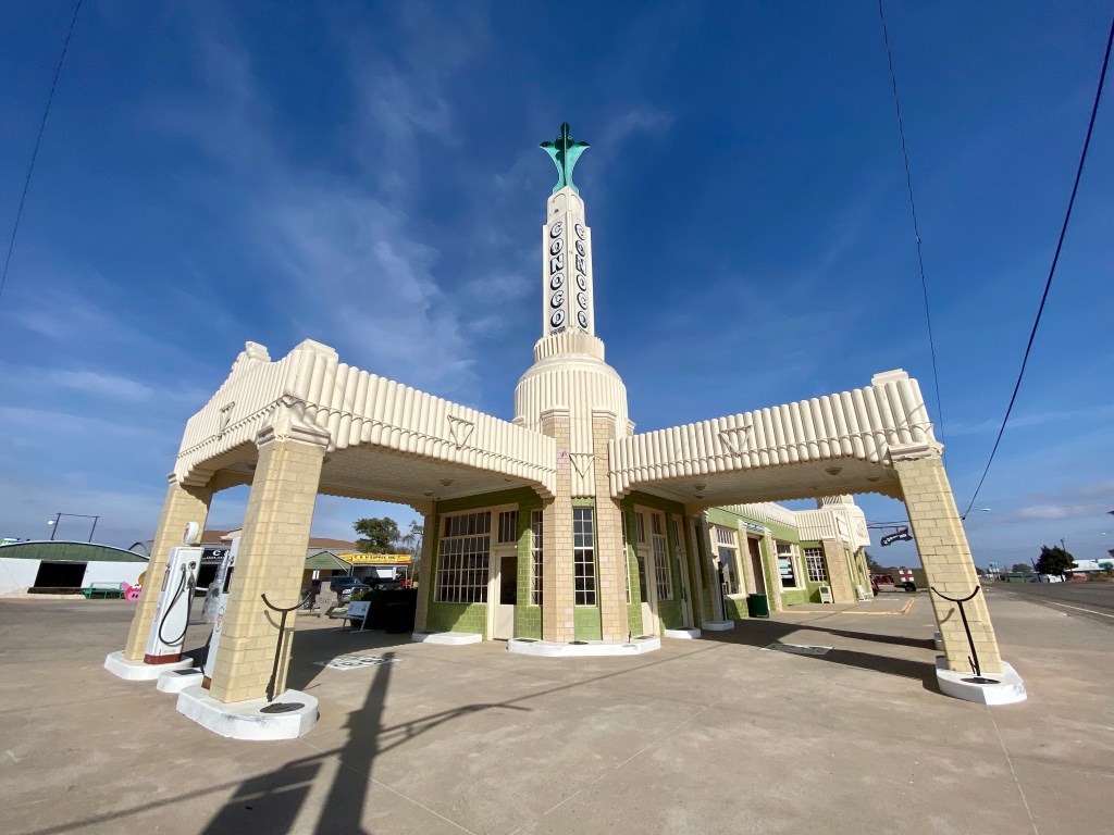 Shamrock is known these days for being a travel destination along US Route 66. It is also known for some really nice Art Deco structures. Here you can see the old and former Conoco gas station.