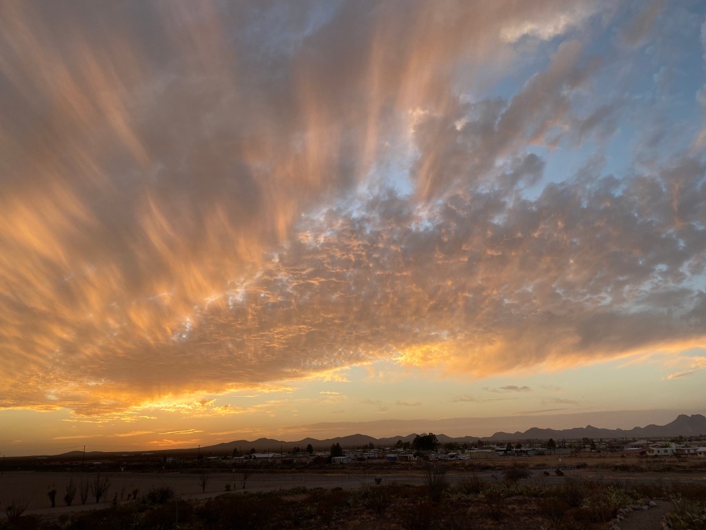 Recently we visited Pancho Villa State Park in Columbus, New Mexico. This park is very close to the Mexican border and about 30 miles from Interstate 10. The landscape was quite barren with mostly sand and cactus. As we walked around the park at dusk we received a treat of a stunning sunset. However, sometimes the best part of sunset comes after the sun has gone down below the horizon.