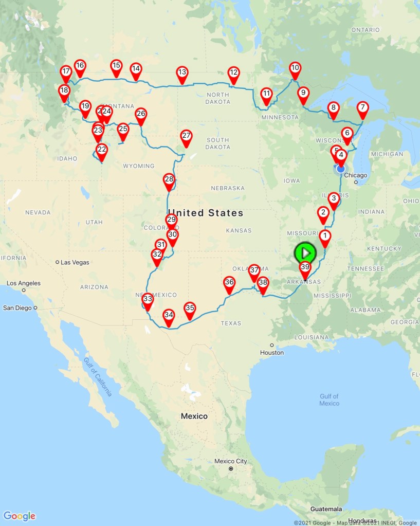 One of the fun things to do every year is to figure out where we are going. This year we decided to head north out of Little Rock and explore a bit of Illinois, Wisconsin, and Minnesota.