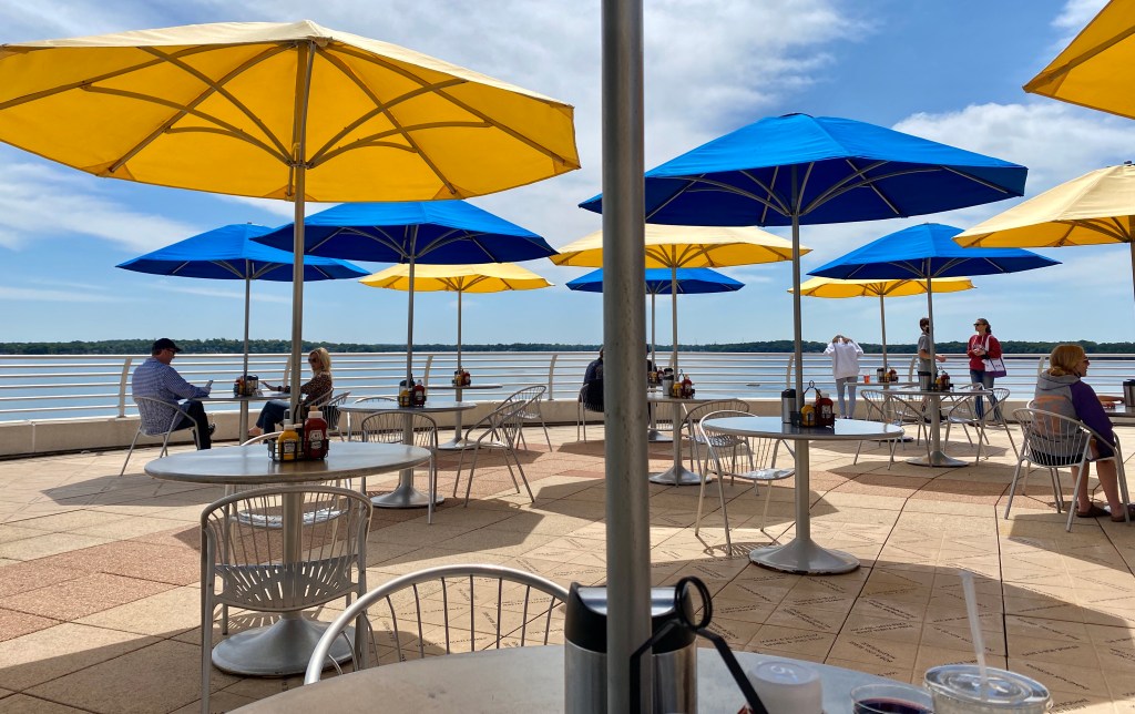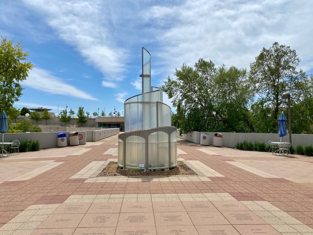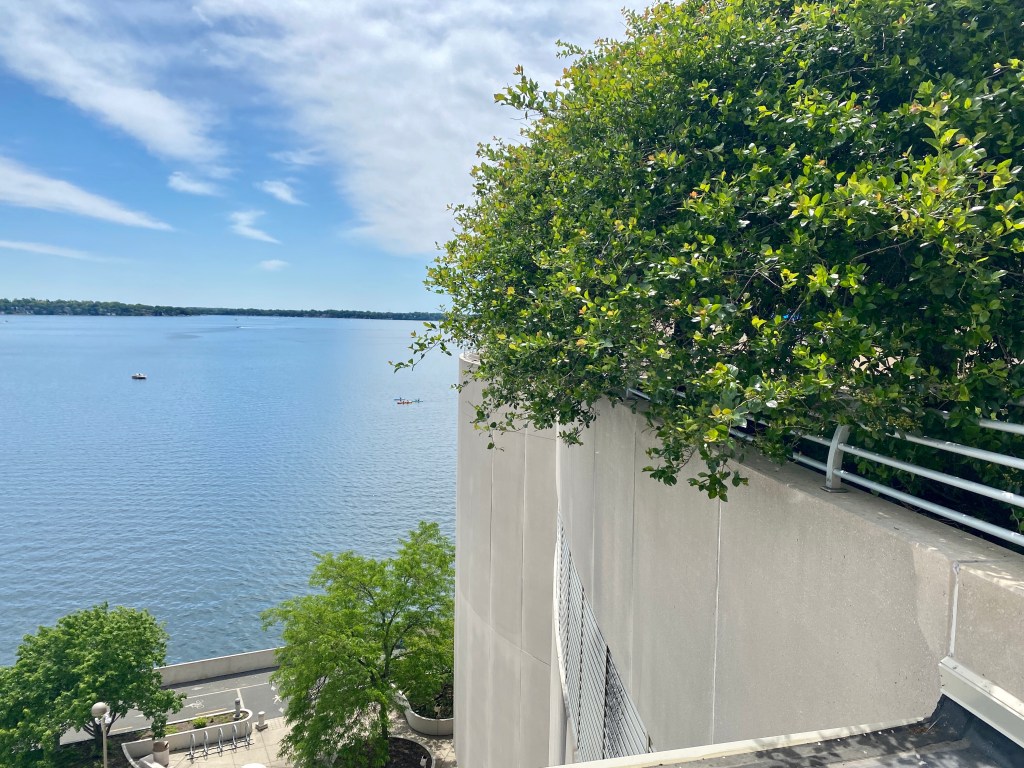Oh, and did we mention the Monona Terrace Community and Convention Center is there too? It was designed by Frank Lloyd Wright so of course we had to visit. While at the Convention Center we were able to enjoy a nice vegetarian lunch while sitting outside overlooking Lake Monona. The following pictures were taken at the Convention Center.