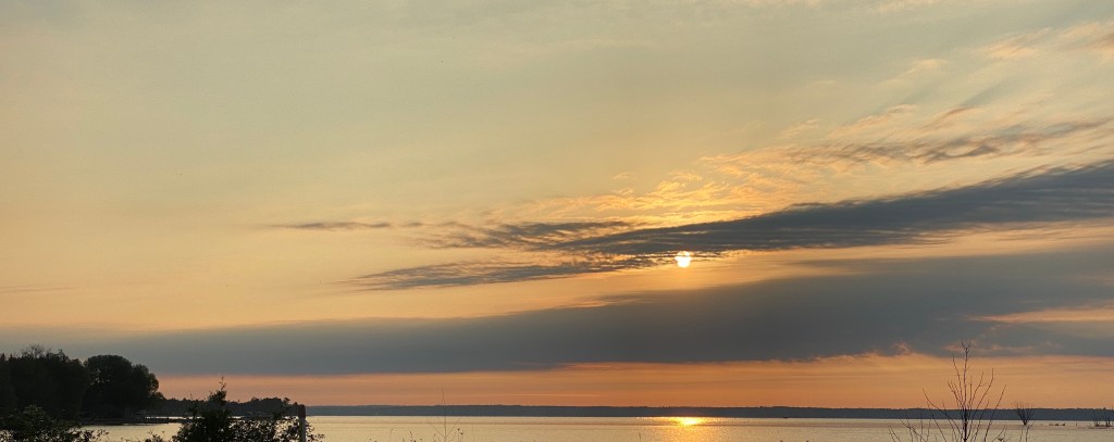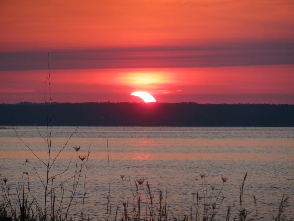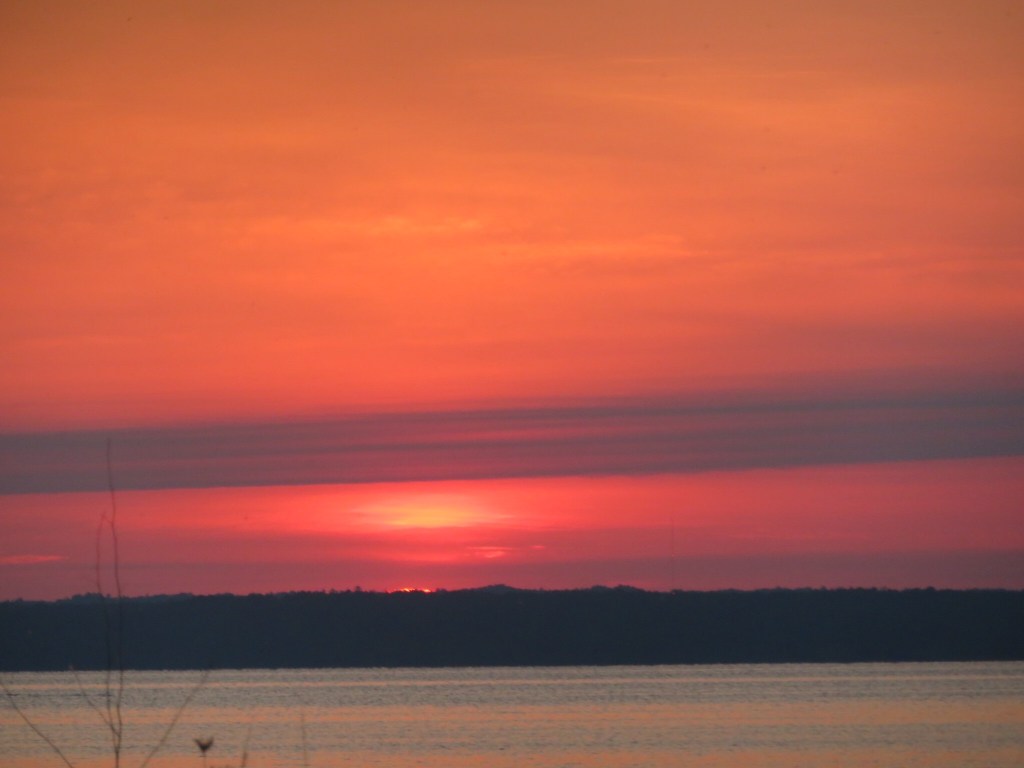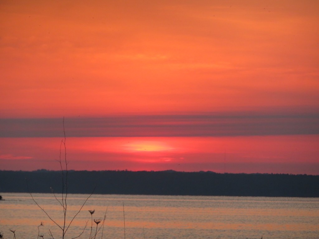 We drove to what we hoped would allow us a good view and arrived just in time to see the sun rise above a far hill across a narrow section of Lake Michigan.