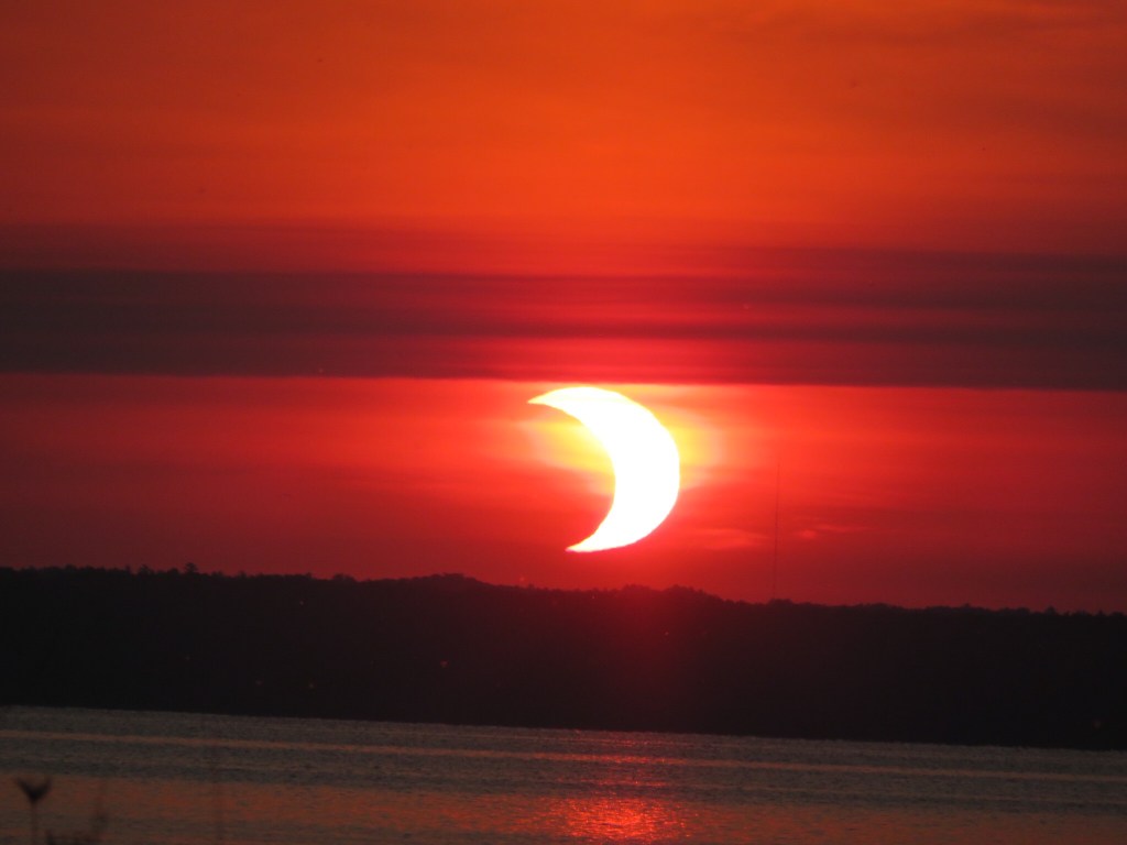 We woke up early the other morning to watch a partial solar eclipse sunrise in Two Rivers, Michigan. As many of you know, this was not an easy or pleasant task for Denise.