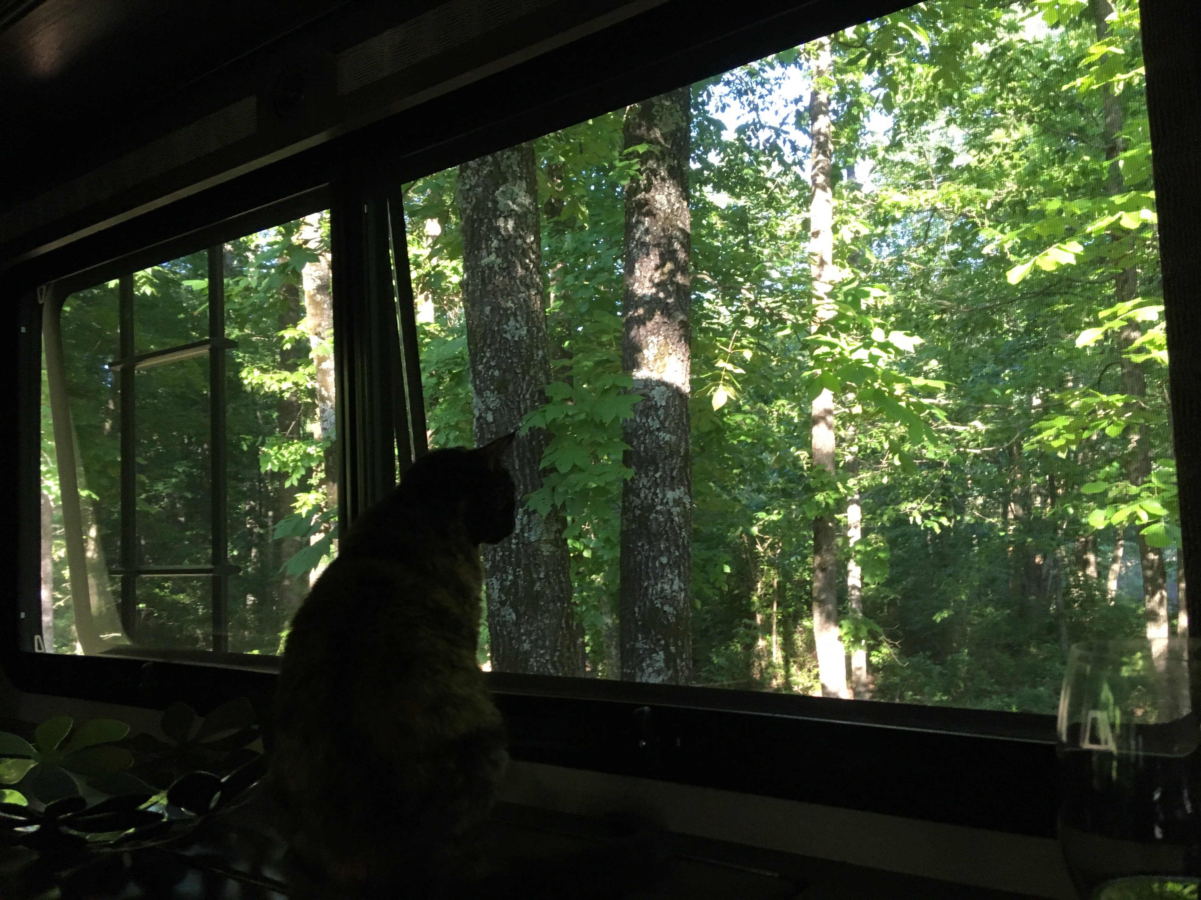 Looking out the window.
