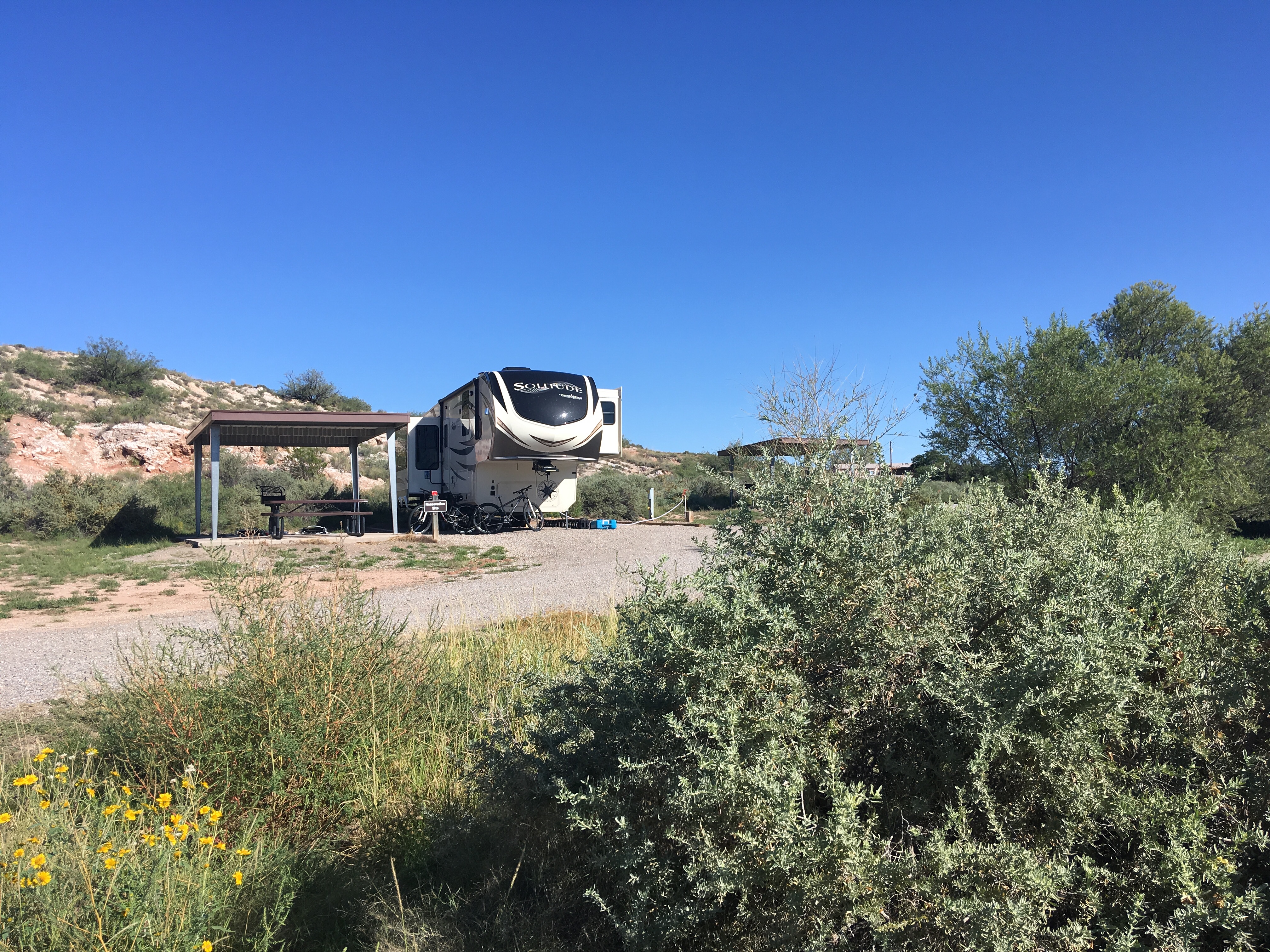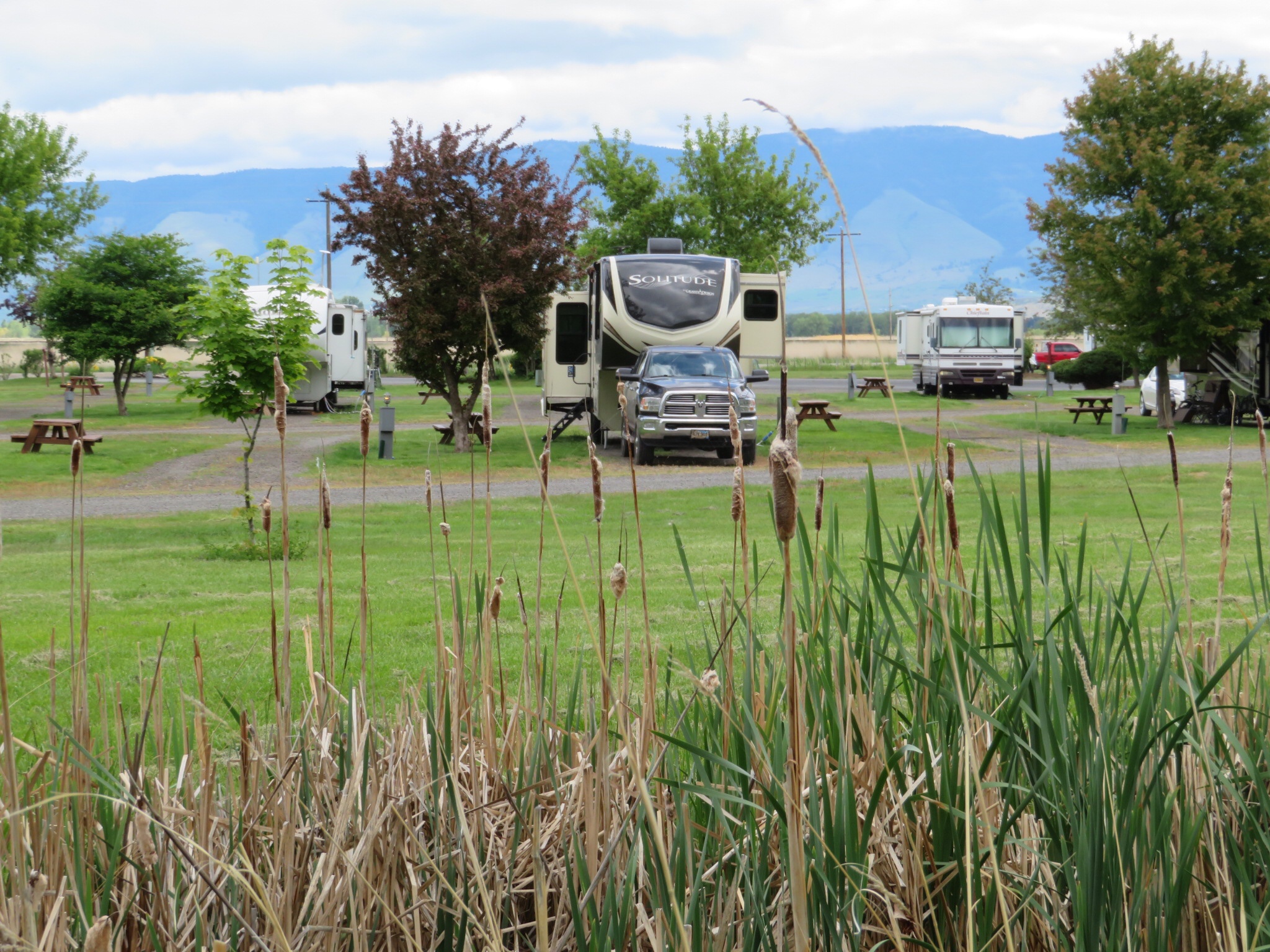 We thought it would be a good idea to show life in and around the campsite. The following pictures show the variety of RV parks we have stayed in as well a few of the beautiful places at or near our campsites.