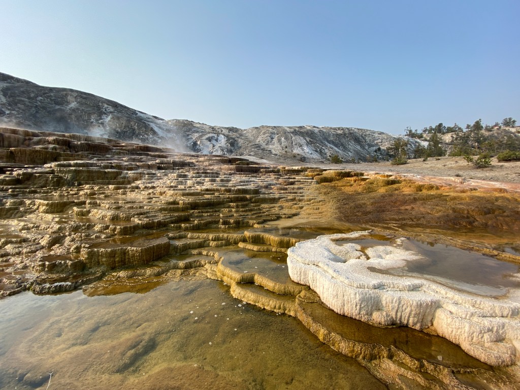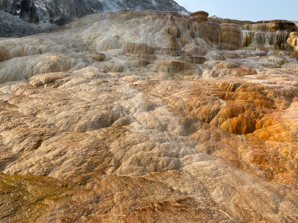 Thermophiles are everywhere in Yellowstone. Thermophiles are living creatures that enjoy the hot and sulphuric waters that we would find unbearable. While the formations are quite beautiful they have, shall we say, an odd odor.
