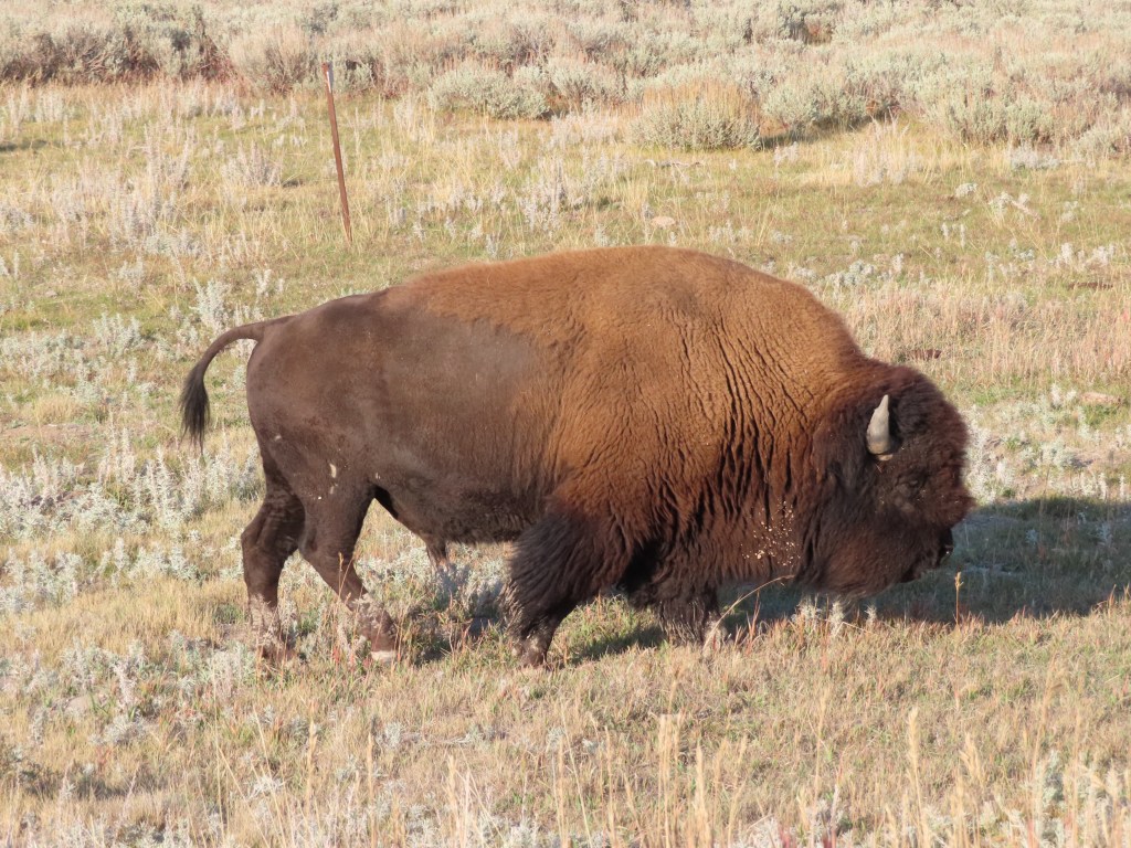 This guy was really close to the road. While the bison move slow under normal circumstances they can accelerate to 30 miles per hour faster than a horse. Needless to say we drove by slowly and carefully.