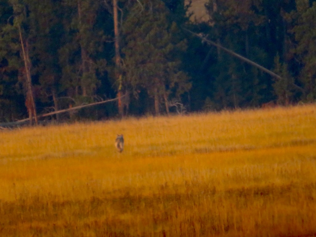 We were lucky enough to see several wolves while we were in the park. This lone wolf was running towards his (or her) family. He would stop after running several hundred feet and howl. This was one of the highlights of the trip.