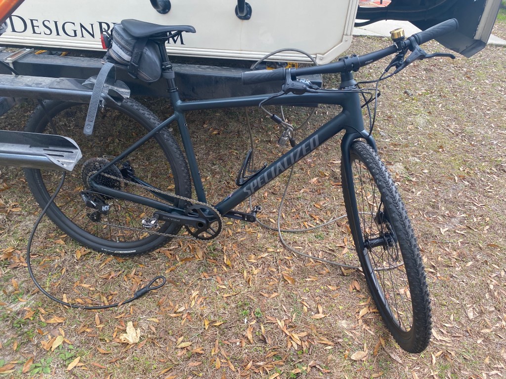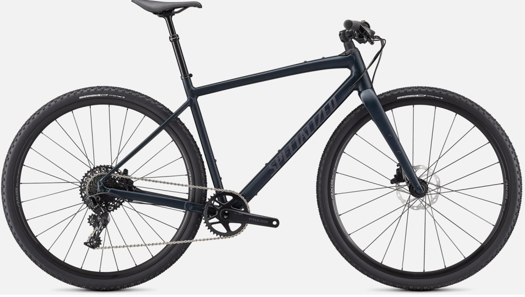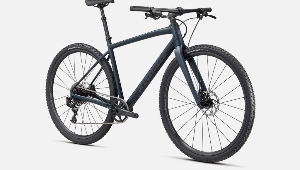 This Specialized Diverge is a cross between a road bike and a mountain bike. Plenty of eyelets for water bottles and panniers.