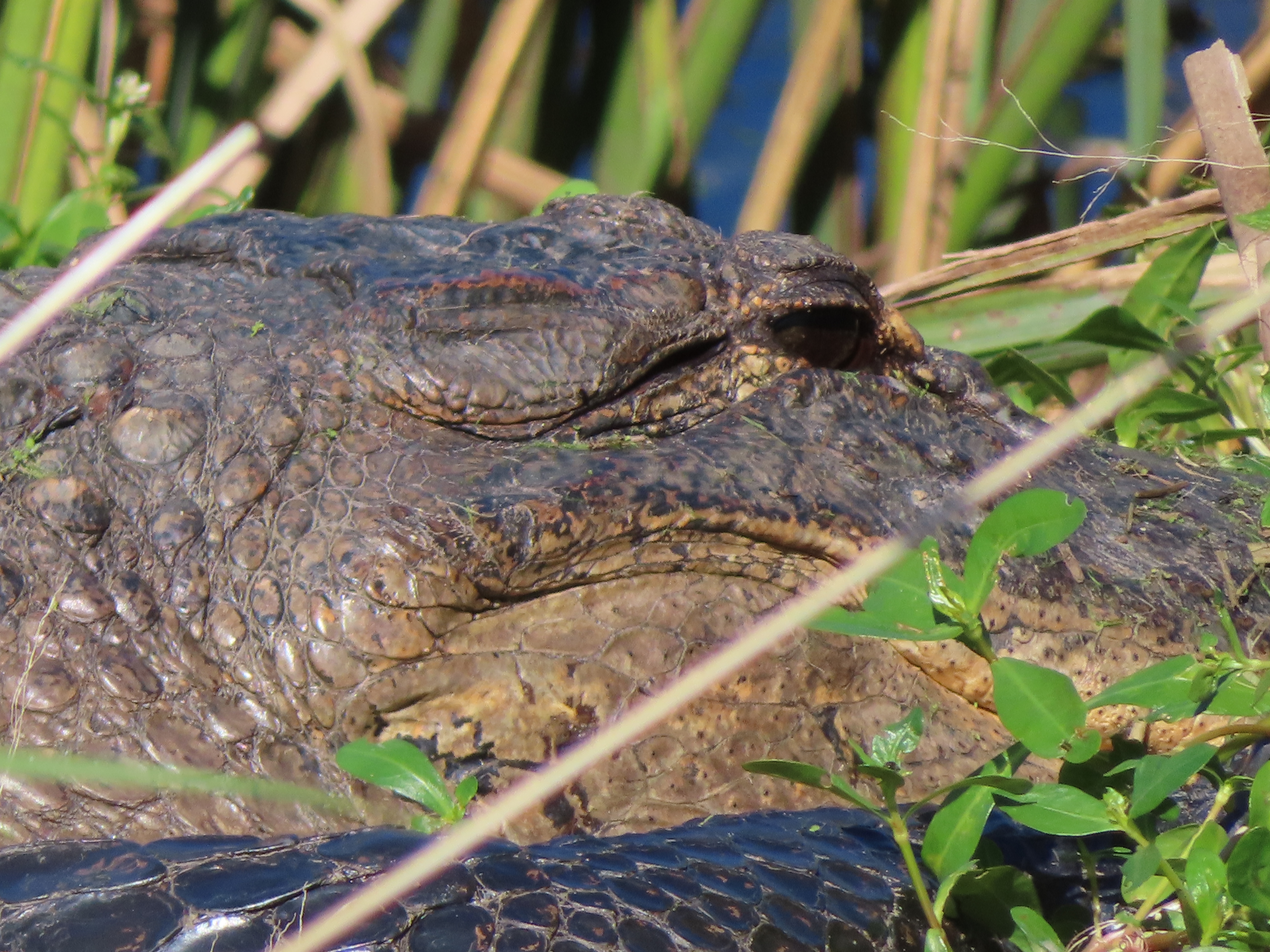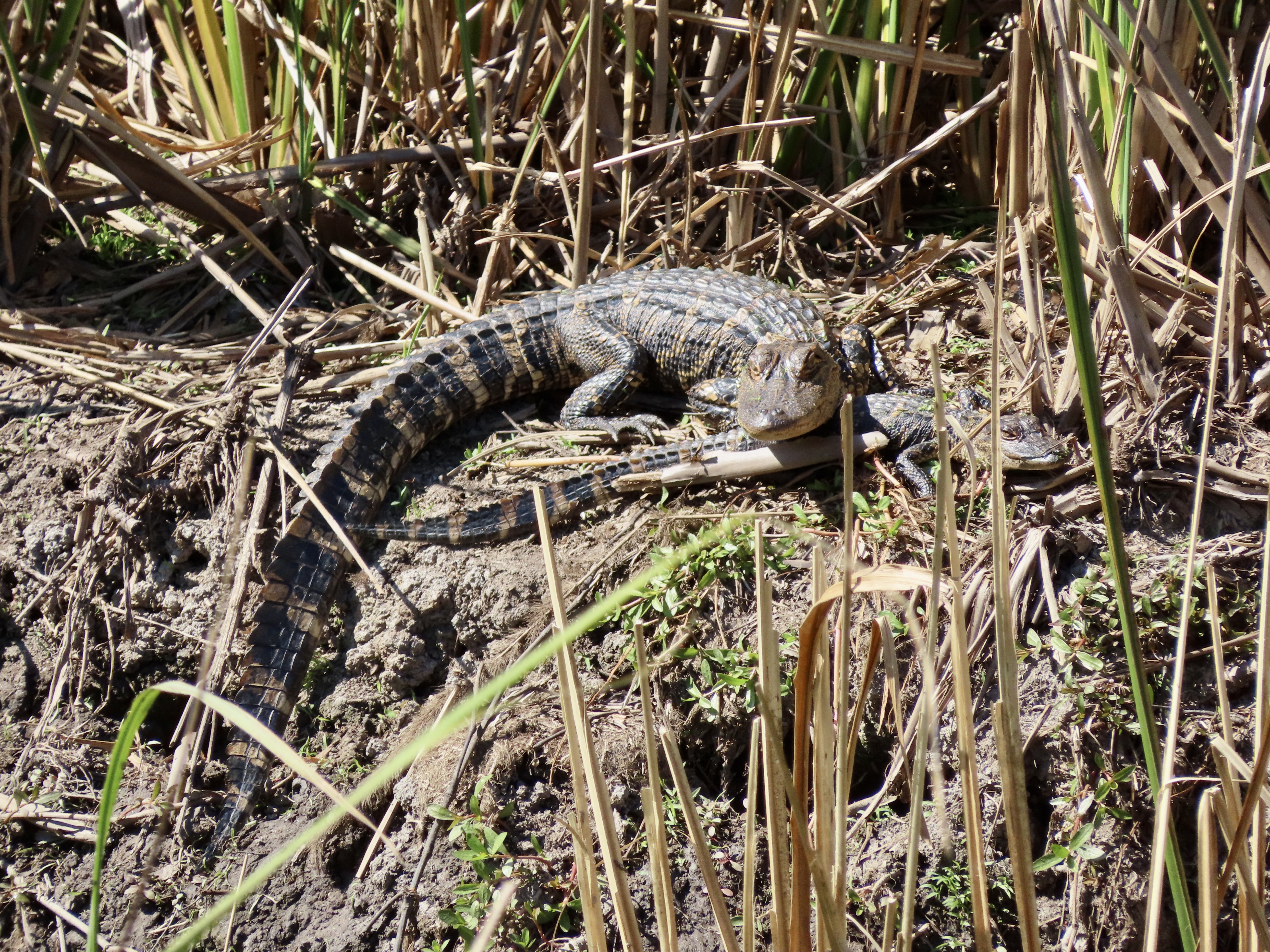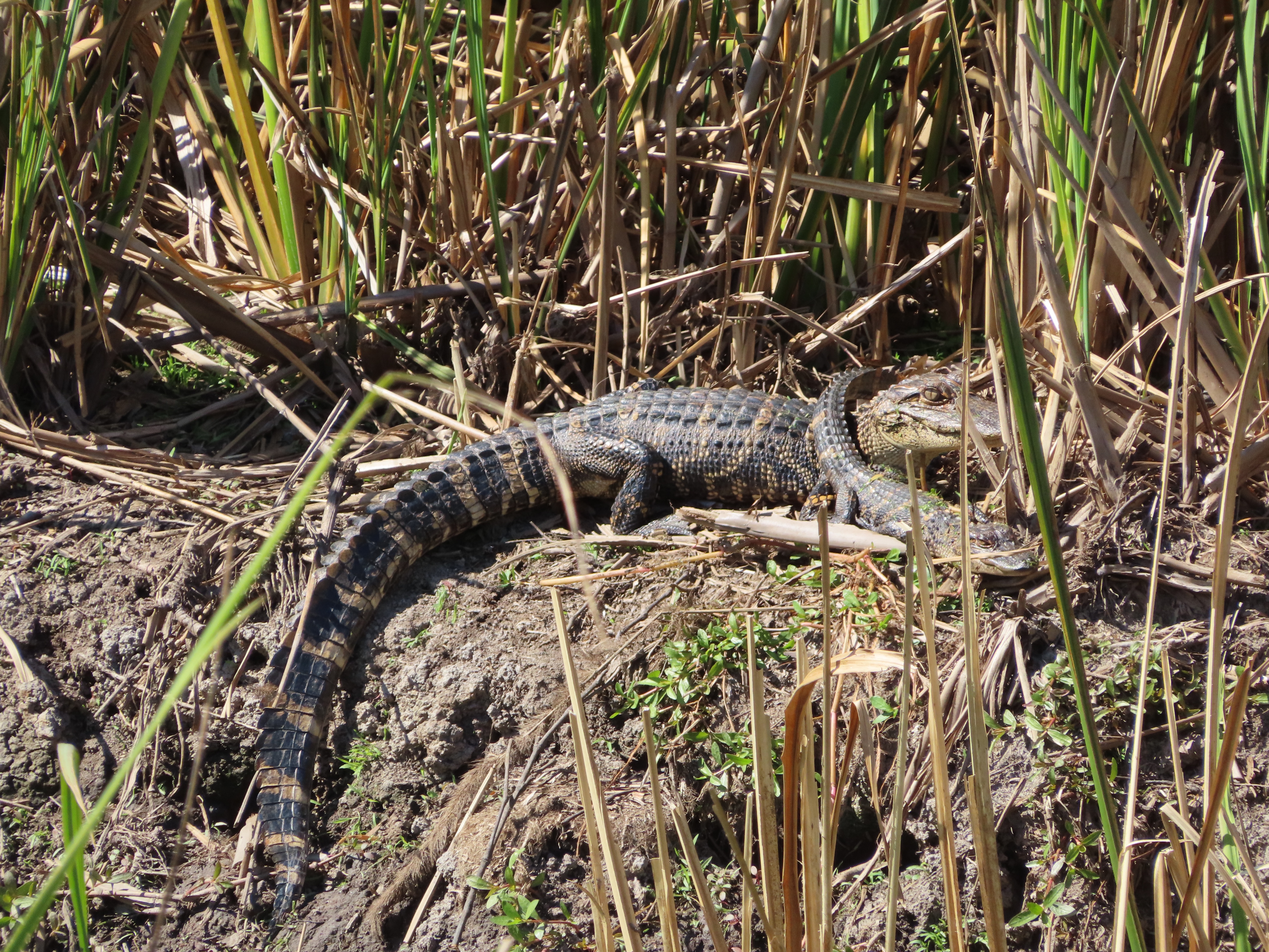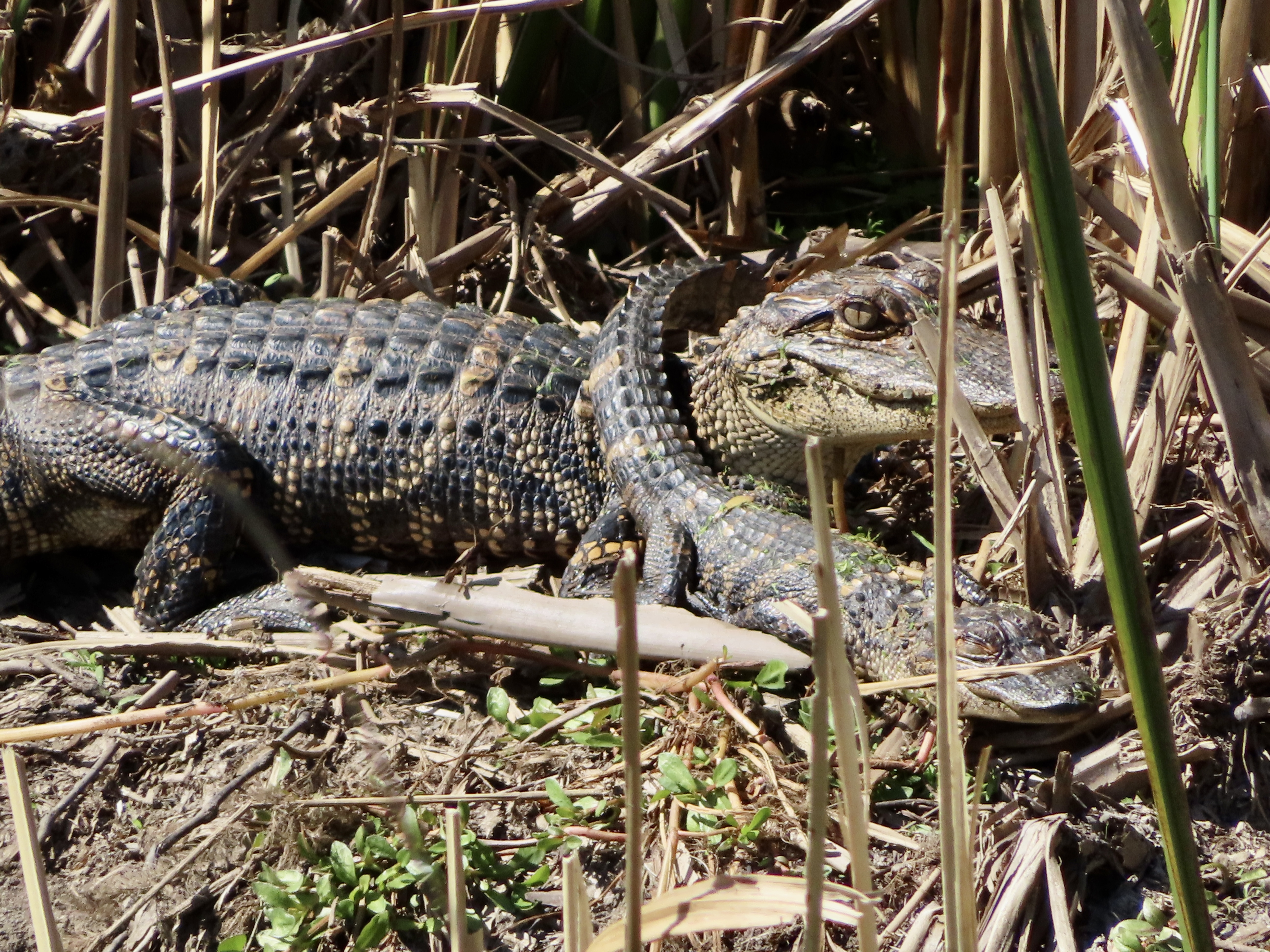 This family of alligators was lying along one of the old canals. Notice multiple generations of youngsters all cuddled up with each other. Mom, a really big mom, was a few feet away. Who said alligators couldn’t be cute?