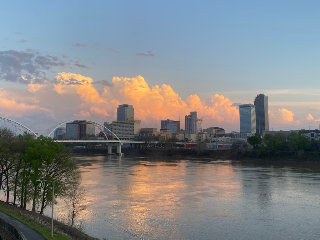 We are now officially residents of North Little Rock, Arkansas. We have a beautiful view along the river trail.