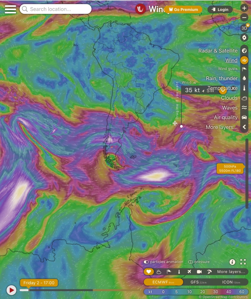When making plans for the day, one of the most important things to monitor was the weather. The Expedition Leader kept telling us, “We don’t care if it’s raining or snowing, we are going out…unless it is too windy or the waves are swelling too high.” Every day we would be briefed discussing the day’s activities. He would always show us a map of the wind conditions for the day. This is an example of the map.
